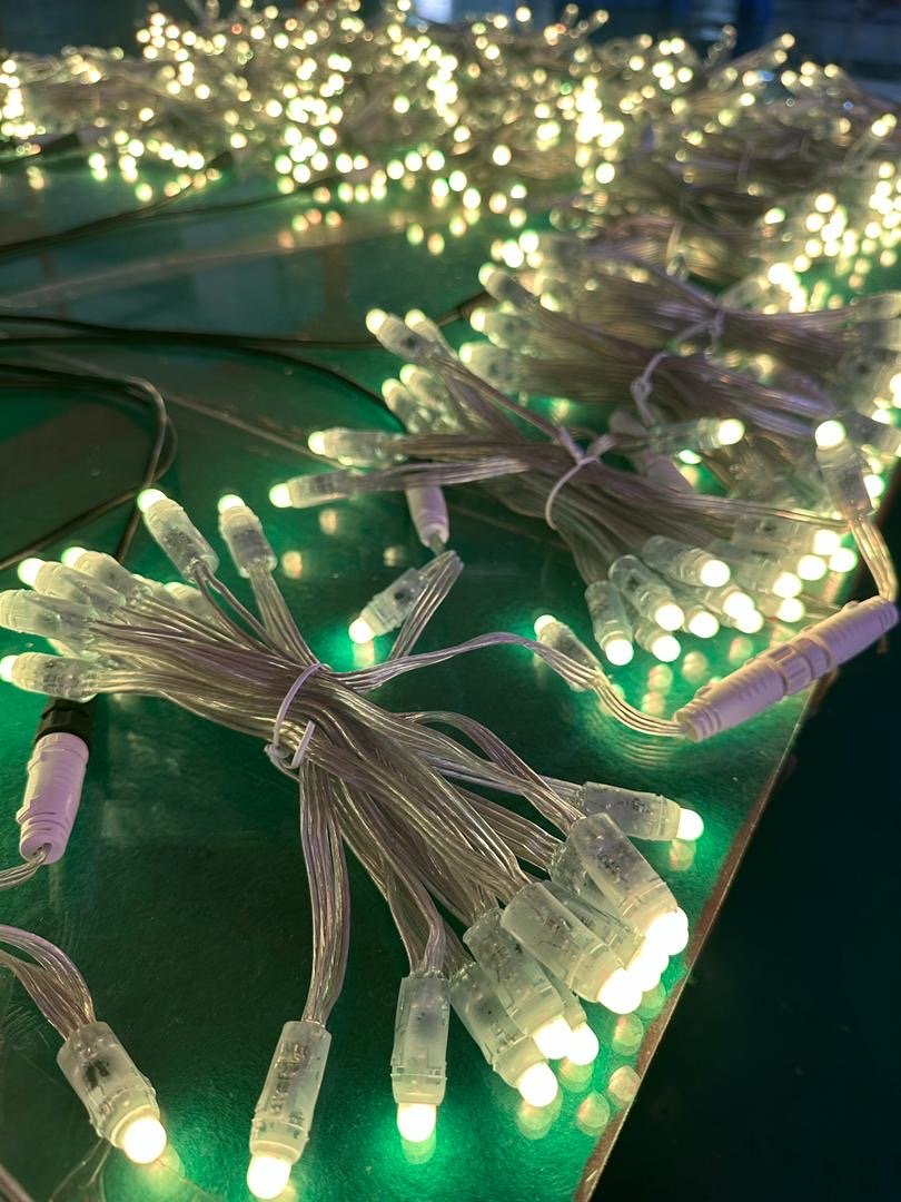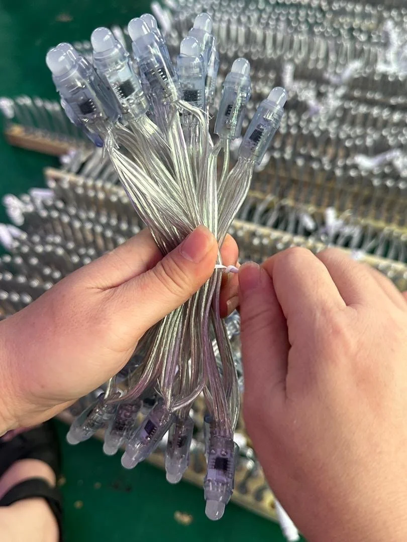 Finally, waterproofing is put to the test. Strings of pixels are dunked in water while fully powered, proving their ability to endure rain, snow, and splash zones.